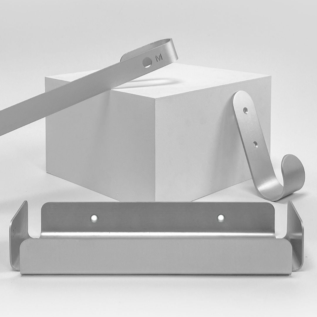 Nossos ganchos de parede que já são sucesso de vendas, agora em uma nova versão: em alumínio natural.