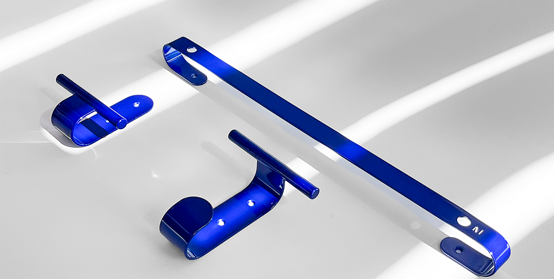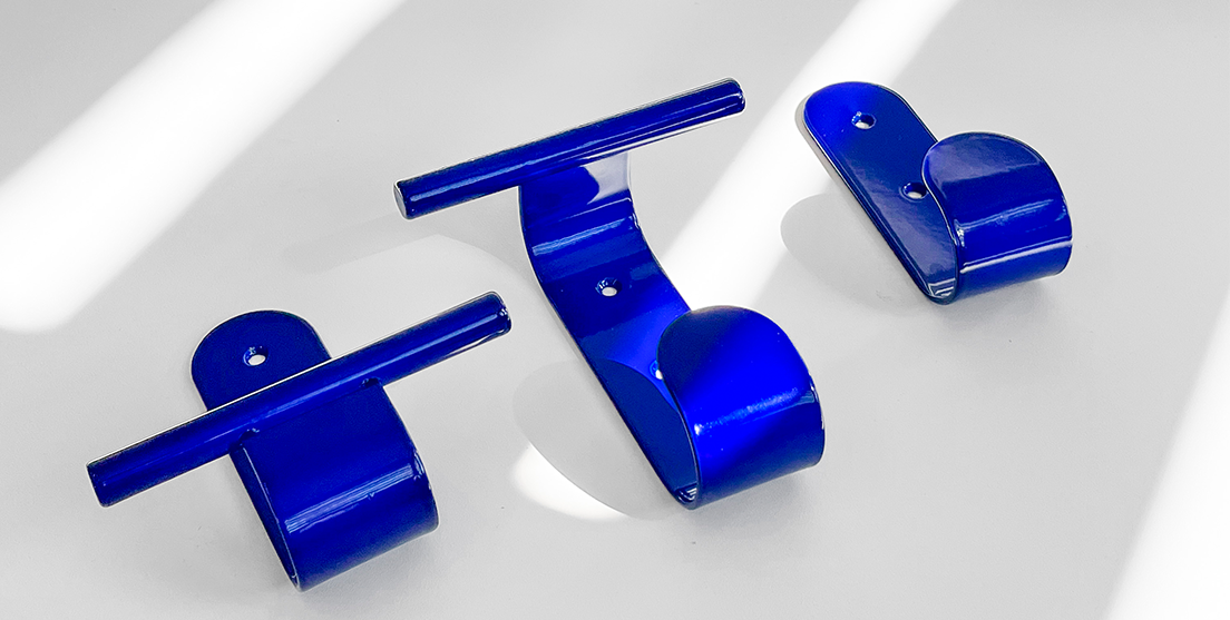 Minimalistas e funcionais, os ganchos em chapa de aço organizam com discrição. Disponíveis em versões com um, dois ou três apoios, são ideais para diferentes composições e estilos de interiores.