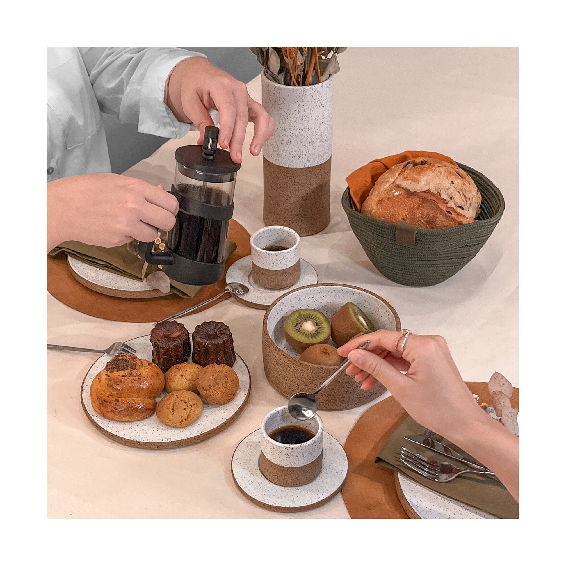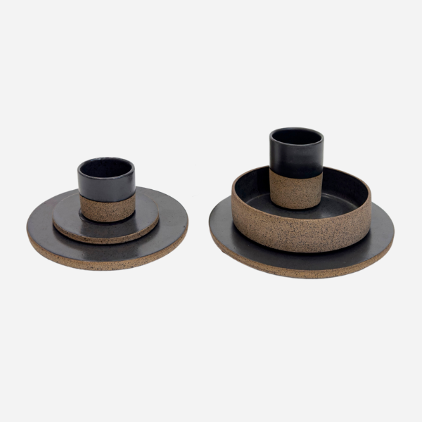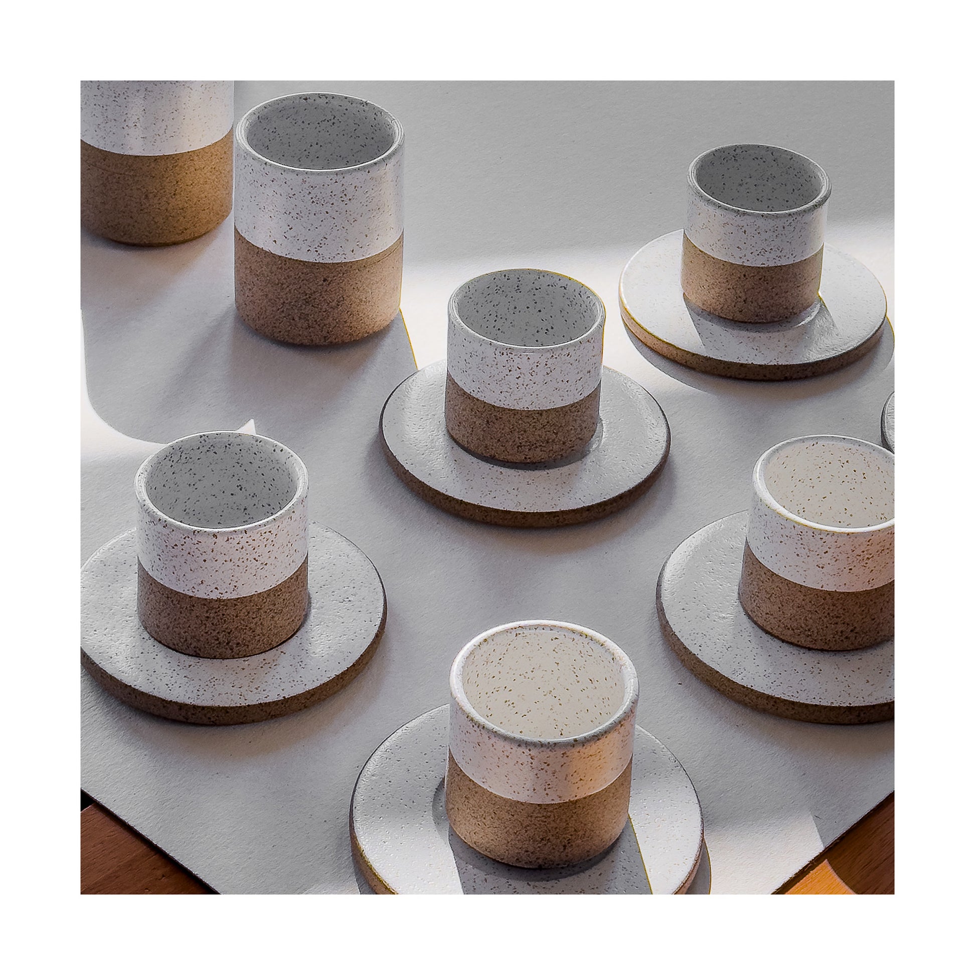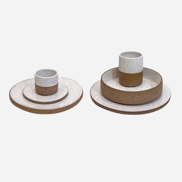 Aparelho de jantar e café completo em cerâmica artesanal esmaltada, feito à mão por ceramistas brasileiros. Composto por xícara com pires, prato fundo, prato raso e prato de sobremesa, é ideal para quem busca uma mesa posta com peças com identidade minimalista e durabilidade com design assinado pela METRO. O conjunto se adapta a diferentes ocasiões — de refeições cotidianas a jantares especiais. A estética minimalista e as cores neutras (branco ou preto) permitem combinações versáteis e usos diversos de cada peça.