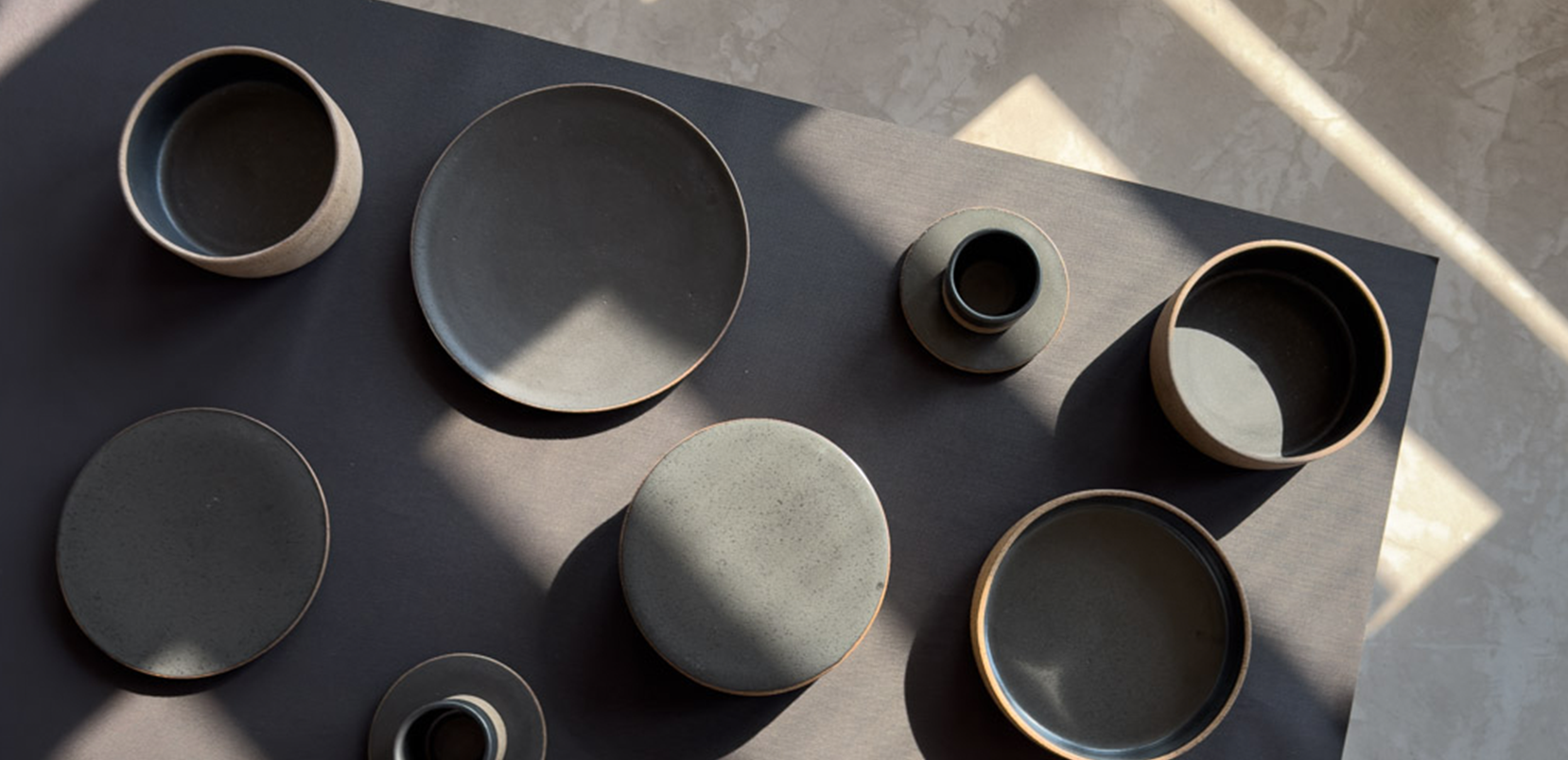 Nossas cerâmicas são feitas manualmente, uma a uma, com variações naturais de forma, espessura e até 2 cm de diferença nas dimensões. Argilas e esmaltes são de origem mineral, o que confere tons e texturas únicos a cada fornada.