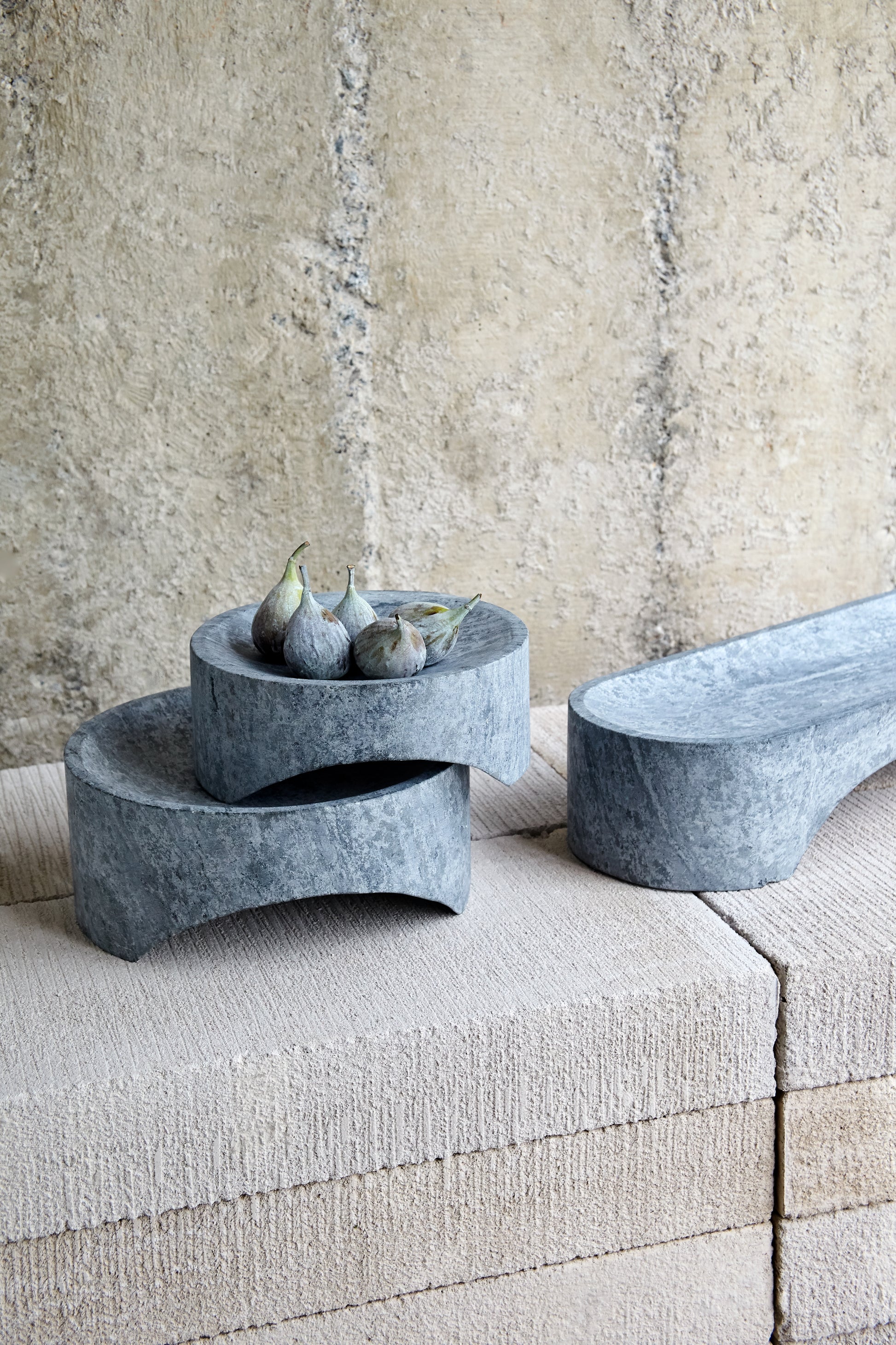 Esculpidas uma a uma à mão em parceria com artesãos de Minas Gerais, sua geometria é quase arquitetônica. Com ou sem objetos em sua superfície, elas certamente se tornam o ponto focal de um ambiente.